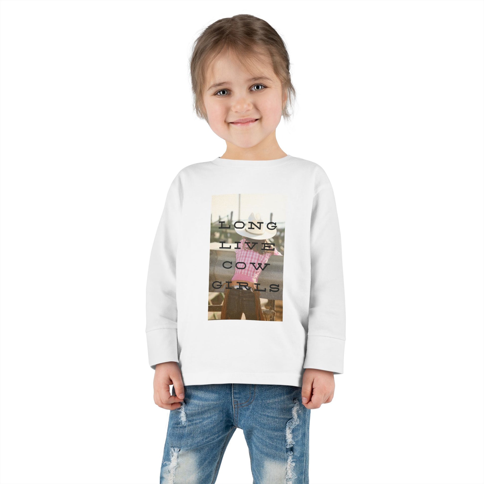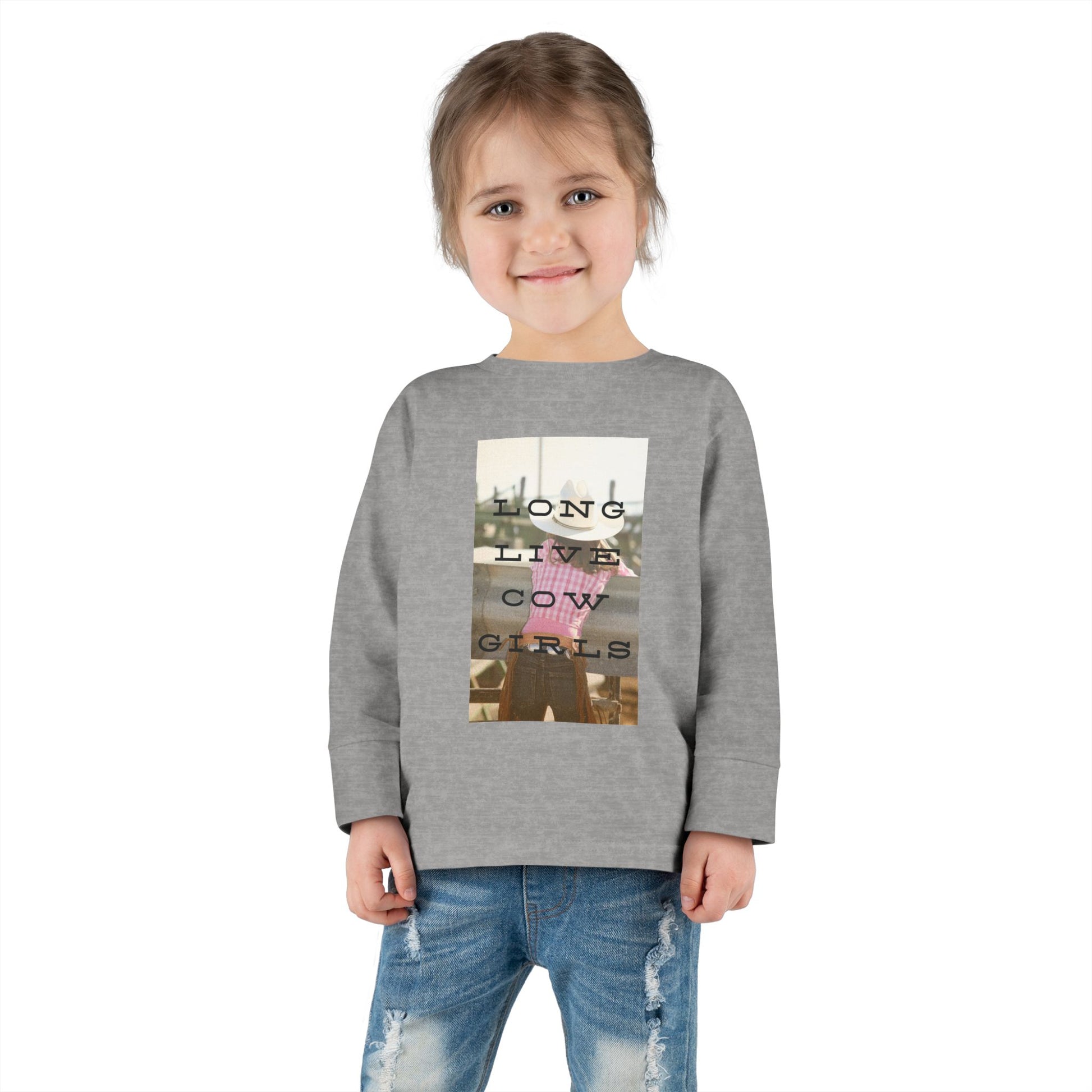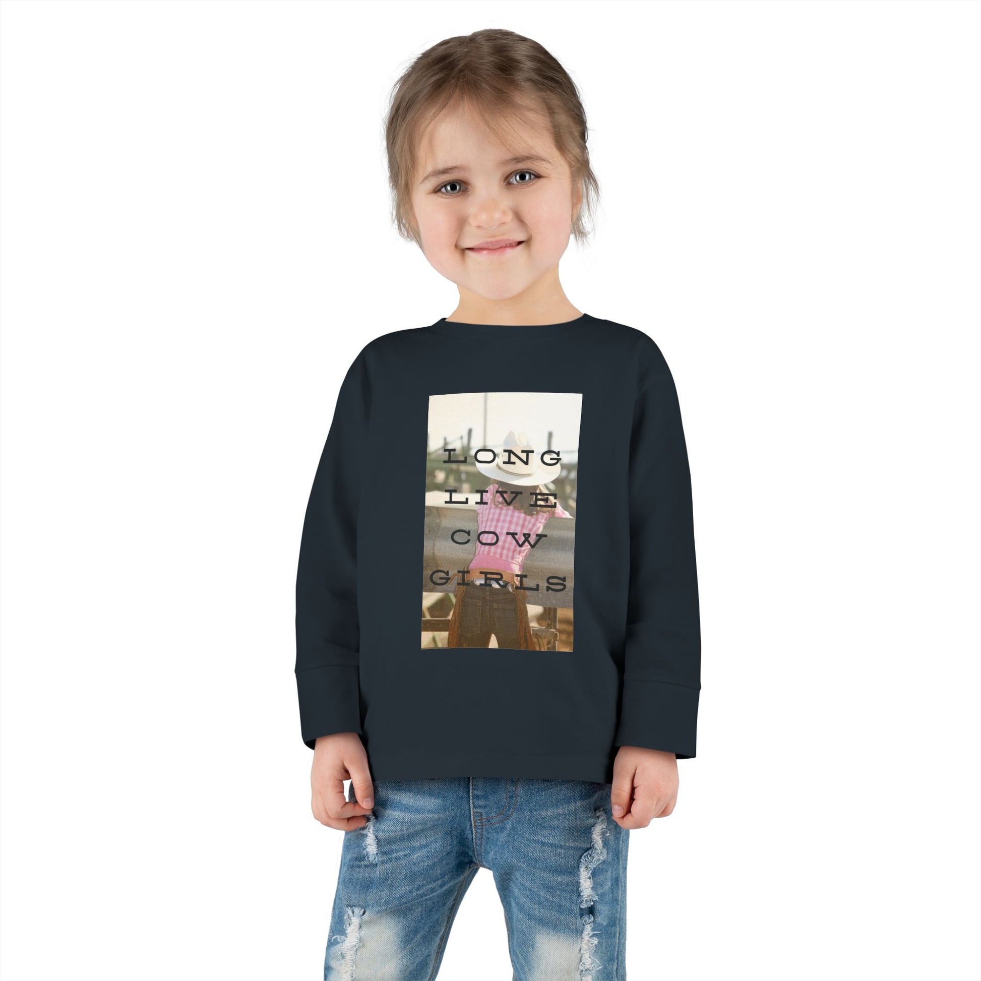 This graphic long sleeve tee is perfect for the little rodeo queen in your life - long live cowgirls!